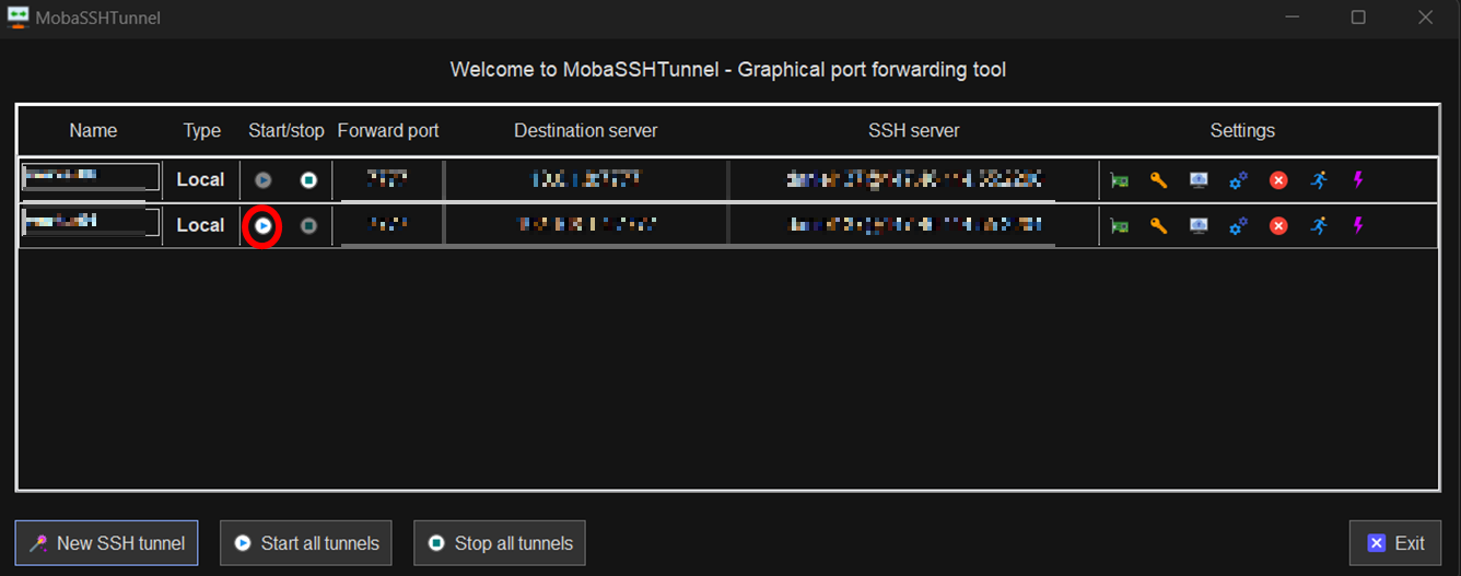 MobaSSHTunnel이라는 창이 뜨는데, 왼쪽 아래의 New SSH tunnel을 클릭한다.