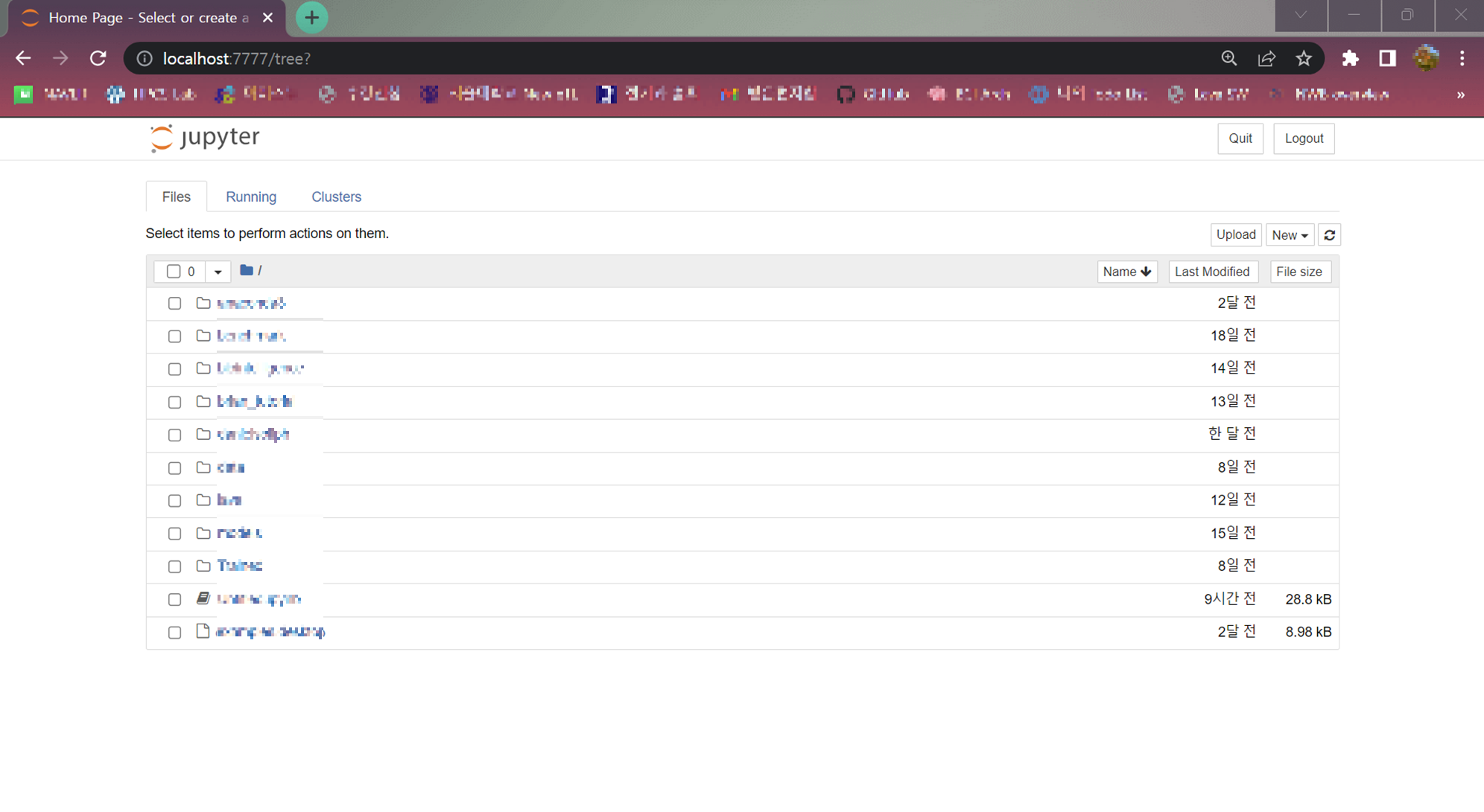위의 과정을 전부 거치면, 아래와 같이 jupyter notebook을 접속할 수 있다.